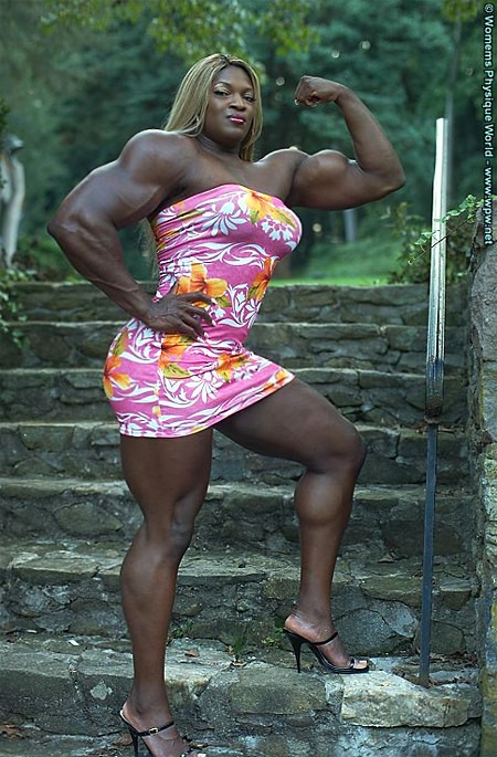Now this is what I call a True Female Muscular Beast. She’s tall and massive. She could even defeat Male Bodybuilders any day. Her attractive looks and blonde hair add to the attraction, and is easily spotted at the shows as she towers over everyone. Her physique is quite impressive, with huge 18.5 inch biceps, giant back and 28 inch quads. Out of this World.